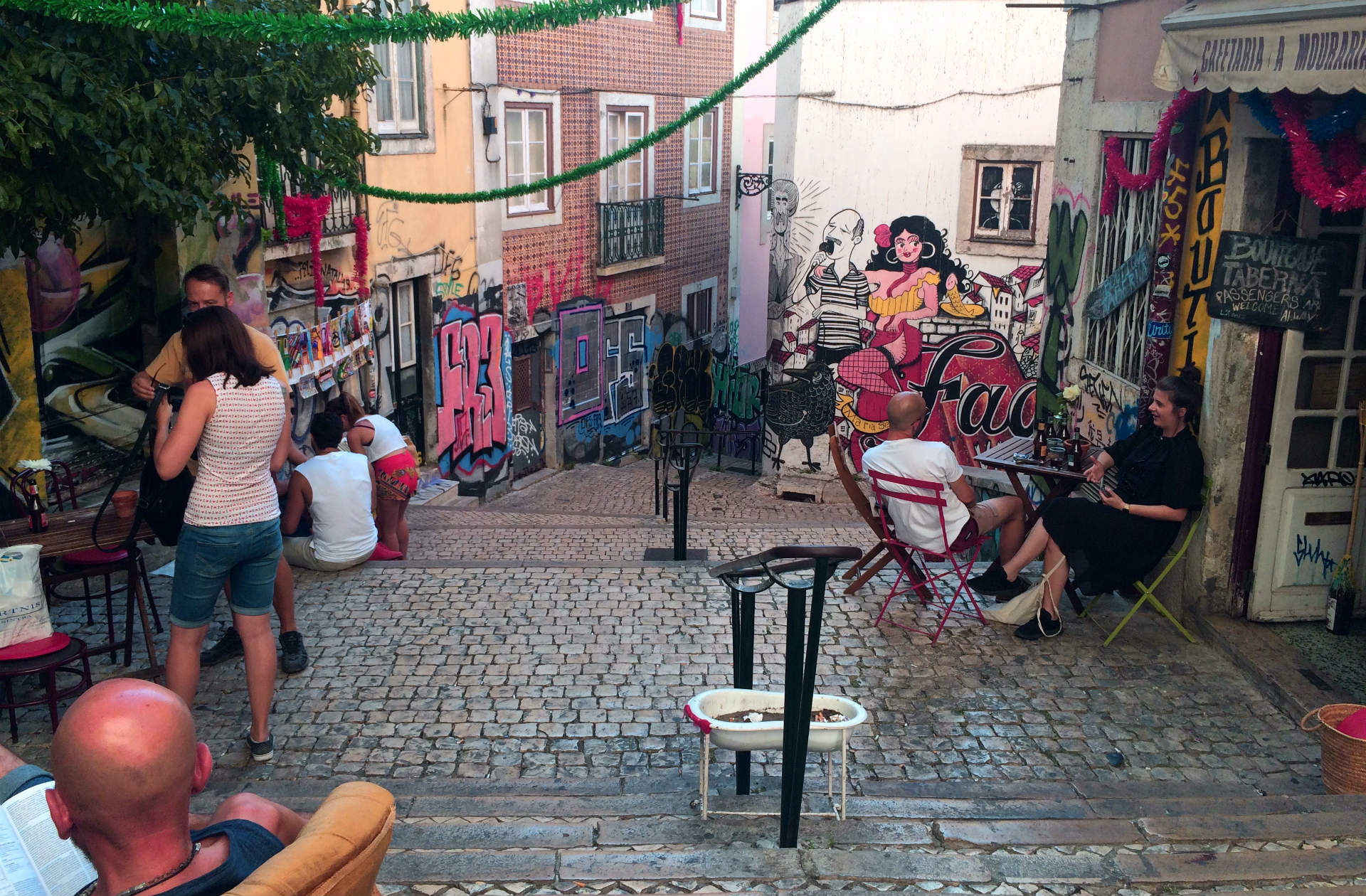 Baixa-Chiado is downtown where you find the shopping streets. Alternatively you can go to one of the shopping malls (e.g. Colombo, El Corte Inglés). Next to Baixa-Chiado is Bairro Alto. That’s where you go at night for drinks. It gets really busy and noisy there. I prefer going out at Cais do Sodré. Portuguese people usually go there, and it has not that mainstream flair as Bairro Alto.